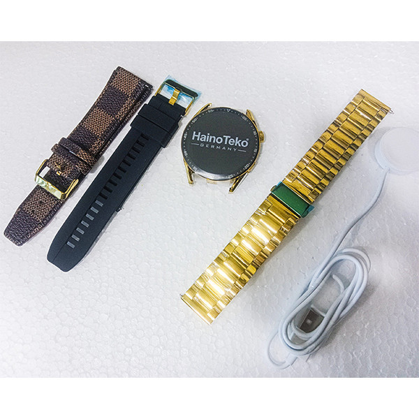 رنگ بدنه طلایی و دارای سه بند چرمی،سیلیکونی و فلزی