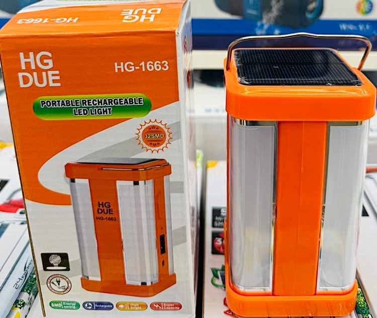 چراغ اضطراری مدل HG-1663 با قابلیت شارژ از طریق برق شهری یا نور خورشید با داشتن پنل خورشیدی کار را جهت روشنایی منازل، ادارات مغازه ها و.. راحت کرده، دارای باتری ۱۶۰۰ میلی آمپری ک ظرفیت بالایی محسوب میشود. دارای دو حالت نوردهی و روشنایی بسیار قوی میباشد.