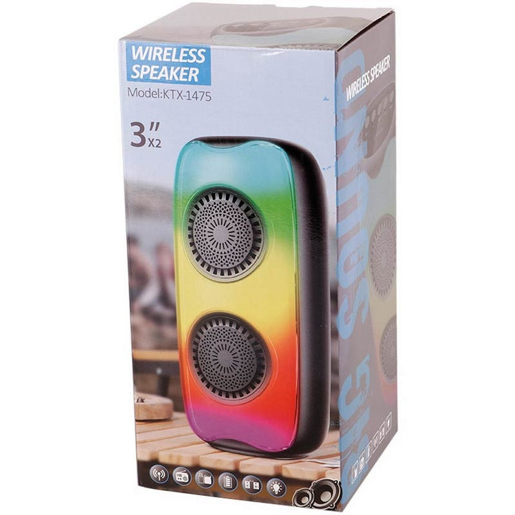 اسپیکر بلوتوثی قابلحمل مدل KTX-1475 یک انتخاب عالی برای افرادی است که به دنبال اسپیکری باکیفیت صدای بالا، امکانات متنوع و طراحی جمعوجور هستند. این اسپیکر با ابعاد ۱۱۵×۱۰۸×۲۴۶ میلیمتر و وزن ۵۶۵ گرم، بهراحتی قابلحمل است و میتواند در هرجایی همراه شما باشد. طراحی مقاوم این اسپیکر از پلاستیک باکیفیت بالا ساختهشده که در برابر ضربه و فشار مقاوم است، بهطوریکه میتوانید از آن در شرایط مختلف بهرهبرداری کنید. اسپیکر KTX-1475 از اتصال بیسیم بلوتوث بهرهمند است که امکان اتصال به دستگاههای مختلف مانند موبایل، تبلت و لپتاپ را فراهم میکند. علاوه بر این، این اسپیکر از پورت USB و شیار کارت حافظه هم پشتیبانی میکند که به شما اجازه میدهد فایلهای صوتی خود را از طریق فلش مموری یا کارت حافظه میکرو SD با ظرفیت تا ۳۲ گیگابایت پخش کنید. این ویژگی برای افرادی که نمیخواهند وابسته به اینترنت باشند بسیار کاربردی است. در داخل اسپیکر KTX-1475 دو درایو ۳ اینچی با توان خروجی کلی ۱۰ وات (۲×۵W) تعبیهشده است که صدای بلند و واضحی را تولید میکند. اسپیکر مجهز به نورپردازی RGB است که جلوههای بصری زیبایی را در محیطهای کمنور ایجاد میکند. همچنین، این اسپیکر قابلیت دریافت امواج رادیویی FM در بازه ۸۷.۵ تا ۱۰۸ مگاهرتز را دارد که به کاربران امکان گوشدادن به ایستگاههای رادیویی مختلف را میدهد. اسپیکر KTX-1475 از باتری داخلی با ظرفیت ۱۲۰۰ میلیآمپر ساعت بهرهمند است که میتواند ۱ تا ۲ ساعت با ولوم ۷۵ درصد پخش موسیقی داشته باشد. این دستگاه بهراحتی با کابل میکرو USB و در مدتزمان حدود دو ساعت بهطور کامل شارژ میشود. این اسپیکر یک گزینه ایدئال برای استفاده در مهمانیها، سفرها و هر موقعیتی است که به یک سیستم صوتی قابلحمل و باکیفیت نیاز دارید.